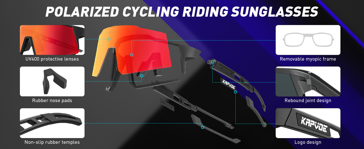 -10%Поляризовані окуляри KAPVOE K9022. Захист від ультрафіолету, спортивні велосипедні сонцезахисні окуляри з оправою TR90