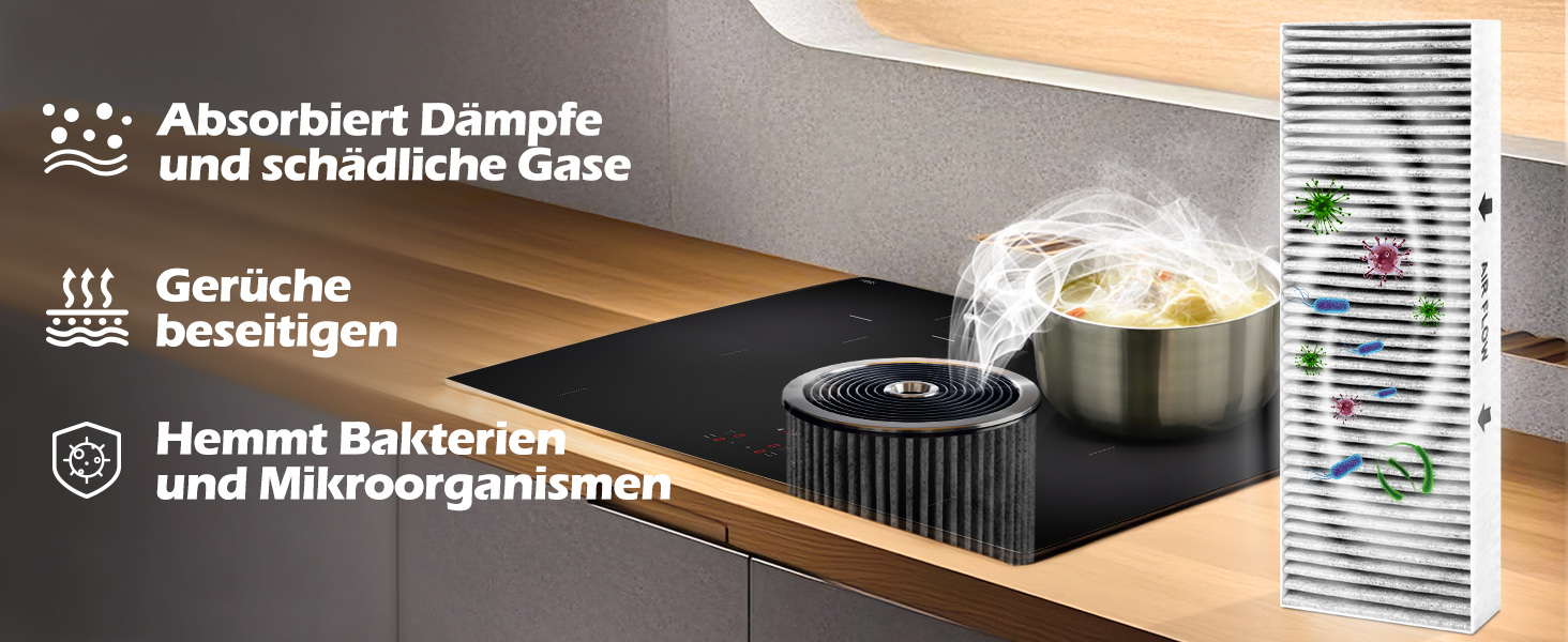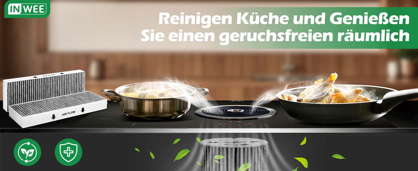 - KEEP THE KITCHEN FRESH Наші фільтри виготовлені з двошарового активованого вугілля, яке вдвічі ефективніше традиційних фільтрів. Вони ефективно нейтралізують та усувають запахи від приготування пари та гарантують, що кухня залишається свіжою та чистою.