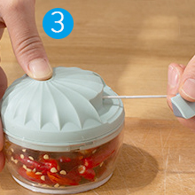 - Видатний дизайн: Гострі леза з нержавіючої сталі, антизаносна основа та ефективний механізм поворотного тяжіння роблять його ідеальним подрібнювачем для подрібнення всіх ваших інгредієнтів, таких як овочі, фрукти, горіхи, трави, спеції та багато іншого. Його також можна використовувати для подрібнення та фаршу безкісткового м'яса.