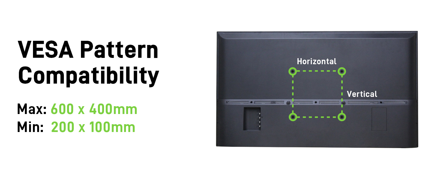 - Універсальний дизайн: настінне кріплення XML025 сумісне з усіма основними телевізійними брендами з розмірами VESA від 200х100 мм до 600х400 мм і може вмістити до 150 фунтів.
